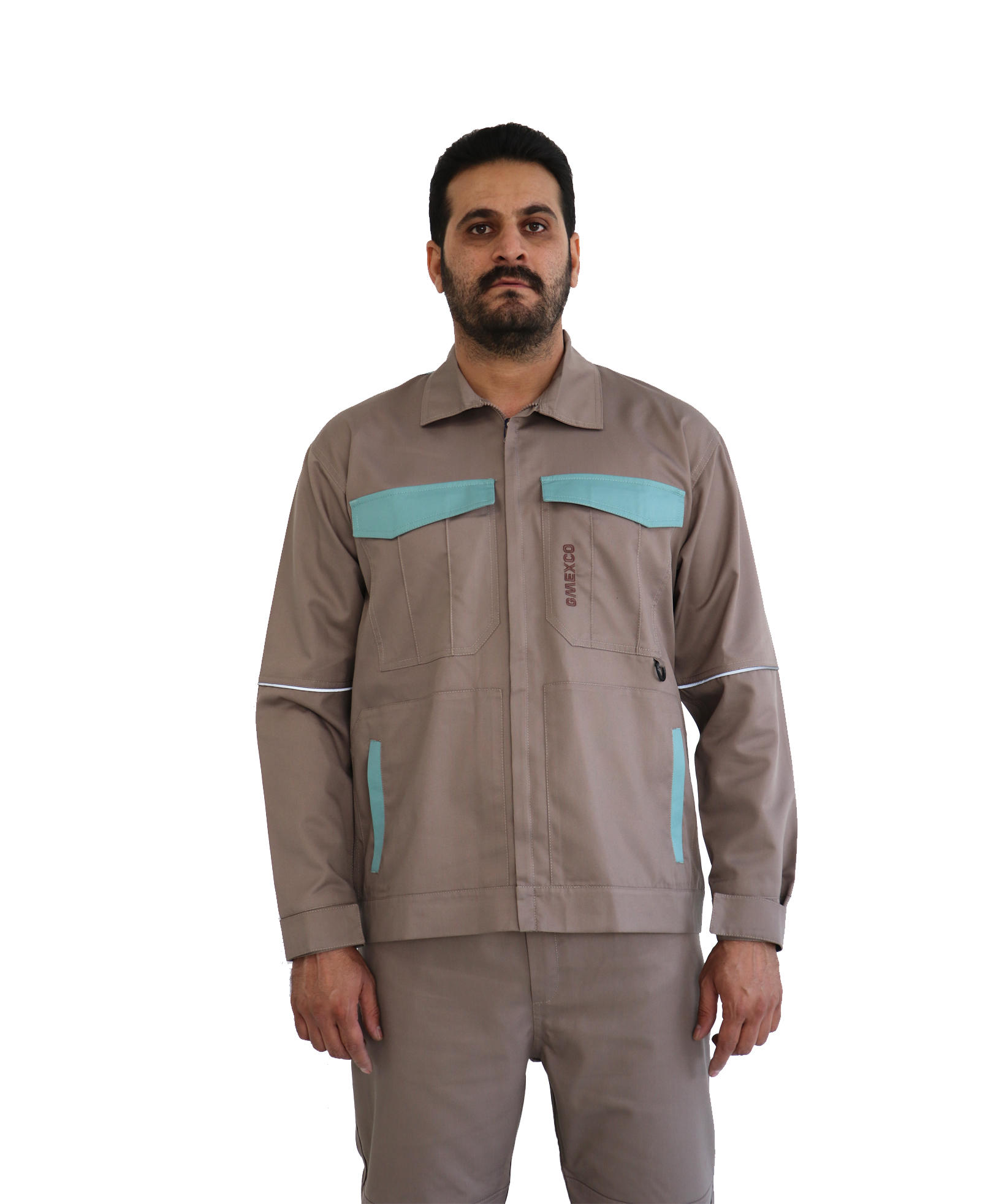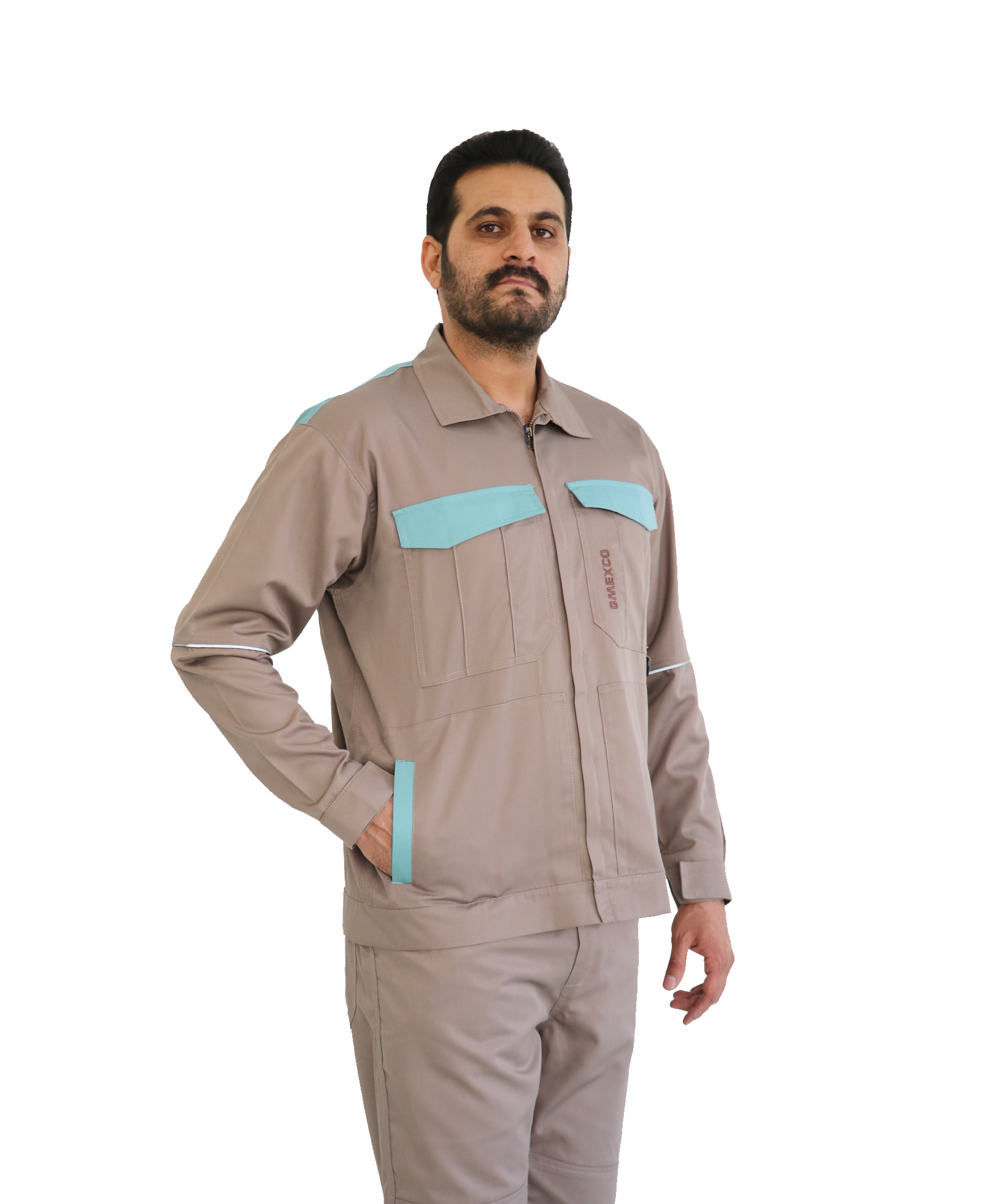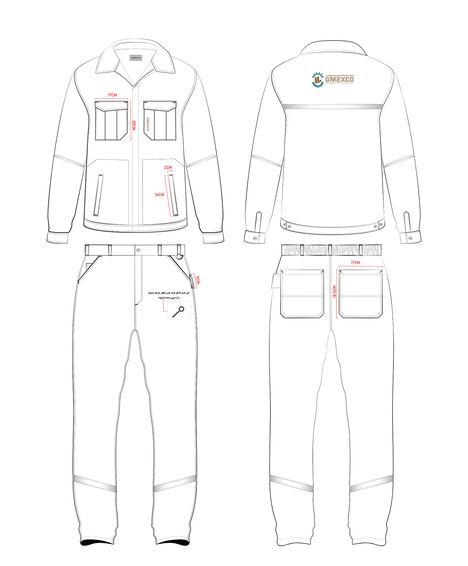 - گلدوزی لوگوی اختصاصی کارخانه روی جیب و سرشانه پشت