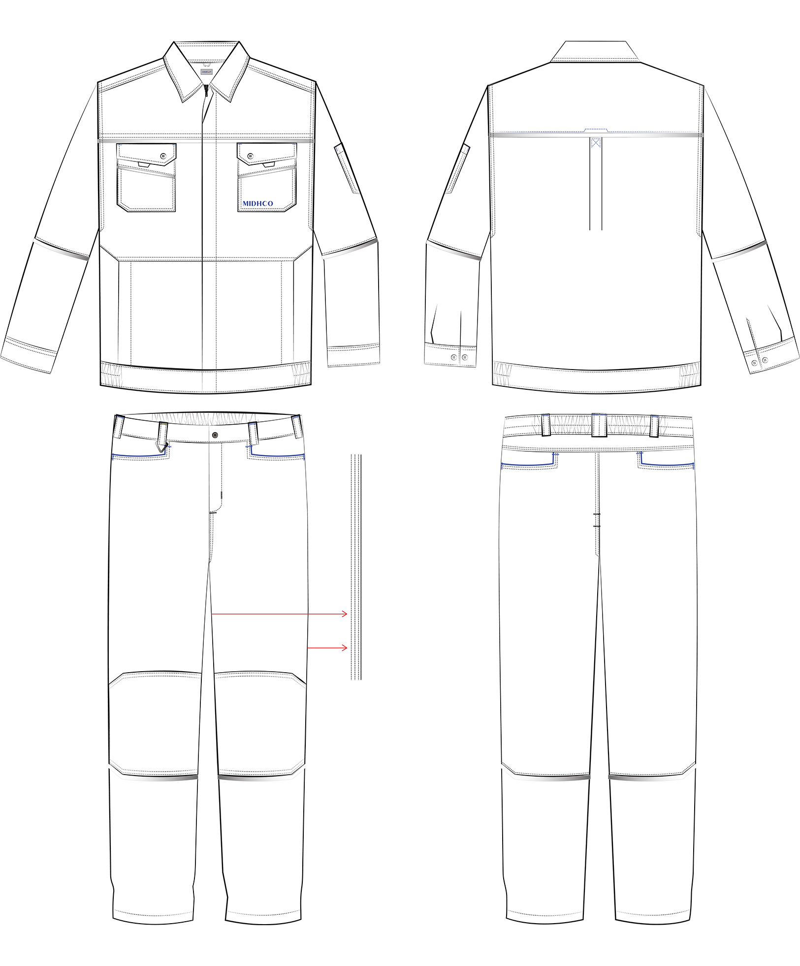 - الگوی دوخت استاندارد با درزهای دوبله جهت افزایش دوام لباس